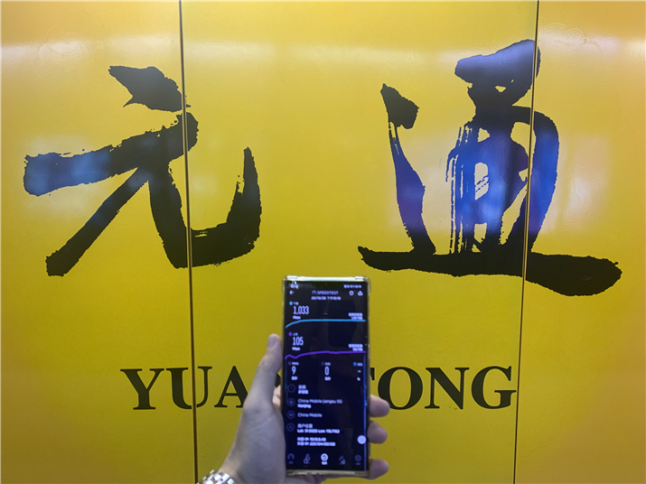 (南京地铁元通站内,移动5G网络下载测速超1Gbps)