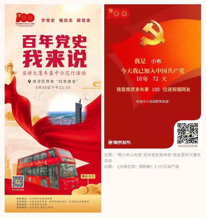指导社会自媒体跟进主流媒体的宣传节奏和重点,拿出优质传播资源发布H5《光荣在党!我骄傲!》、图文《在南京,寻找光的印迹》等原创内容400余条。