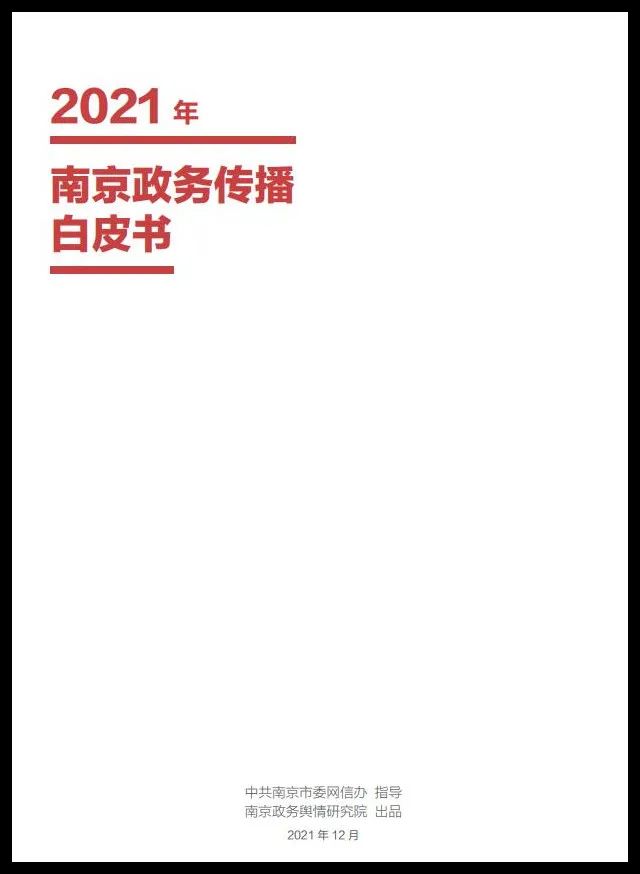 《白皮书》对2021年南京政务发布融合传播力进行综合评估,总结了南京在政务新媒体网络内容建设方面的实践,对接下来政务新媒体的深度融合传播提出建议,并展望智媒时代政务新媒体新动能新前景。