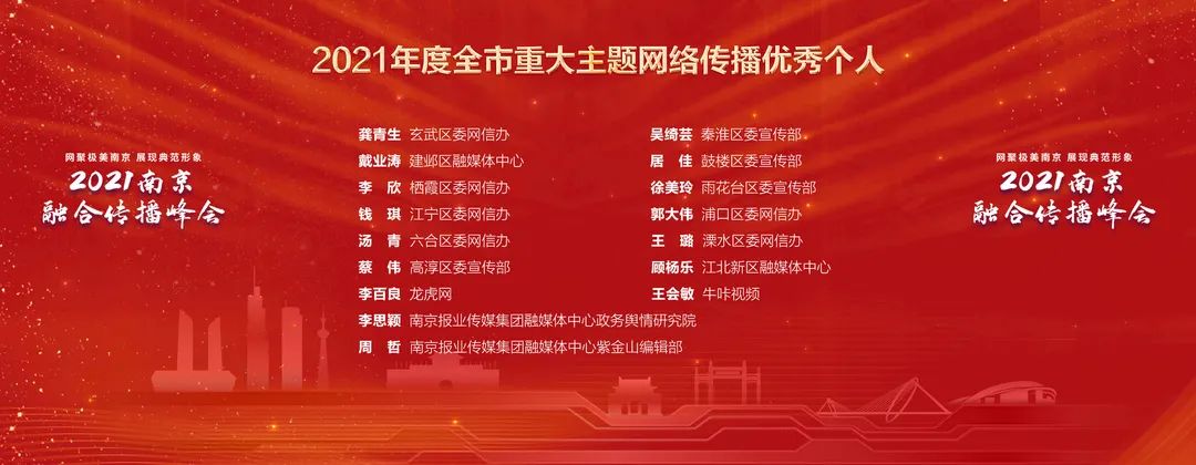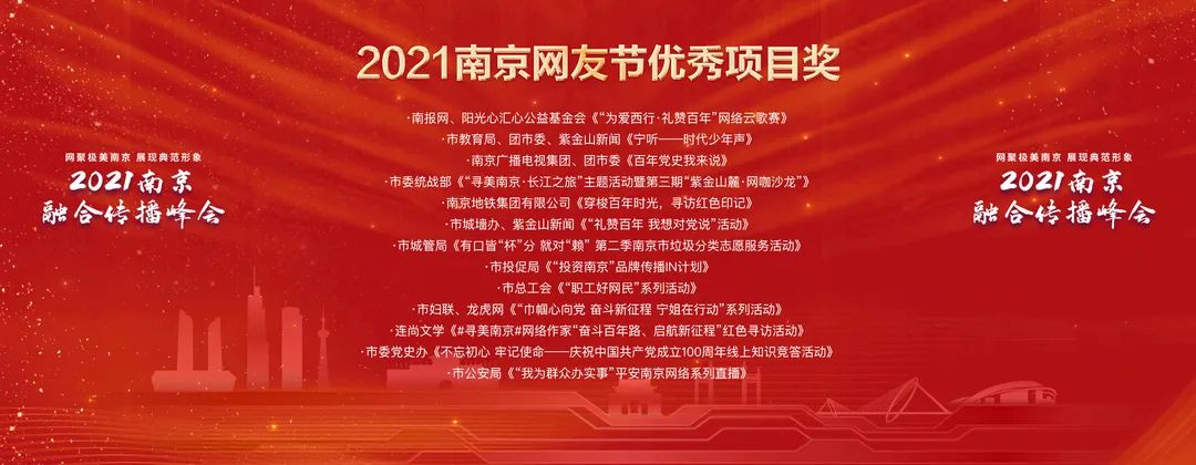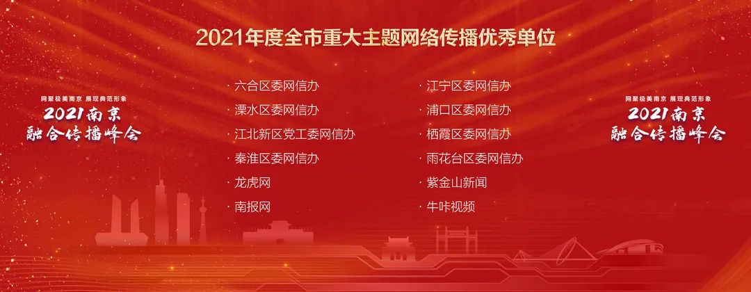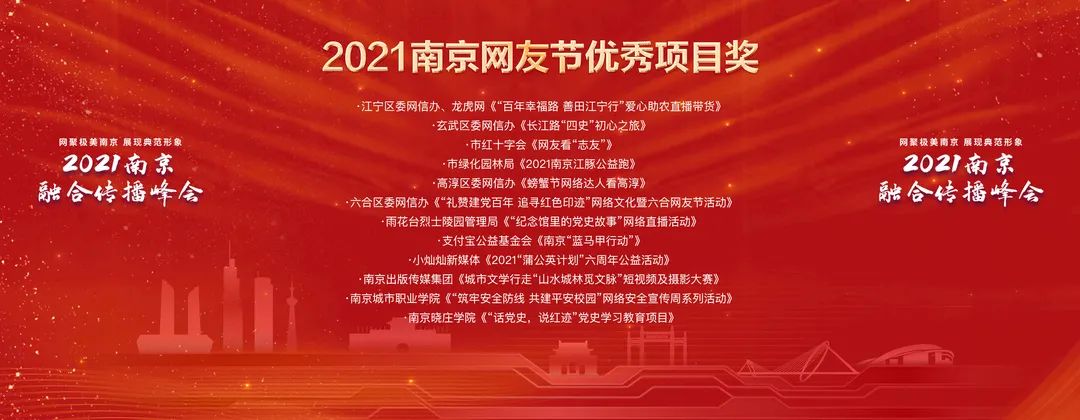 本届峰会由中共南京市委宣传部、中共南京市委网信办、南京报业传媒集团、南京广播电视集团主办,中共玄武区委宣传部(网信办)、南京政务舆情研究院联合承办,各区委网信办、各区融媒体中心支持。以“网聚极美南京 展现典范形象”为主题,总结和展示了2021年南京网络融合传播成果和网络内容建设成就,汇聚了全市网络媒体、政务新媒体、专家学者、传播达人代表,共同探讨融合传播与城市形象网络宣传的创新实践。
