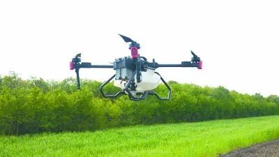 近日,在南京浦口区汤泉农场数字大田项目现场,小麦已经冒出嫩绿的幼苗,进入抽穗扬花期,占地1200亩的麦苗郁郁葱葱,长势喜人。“嗡嗡……”伴随着螺旋桨的高速转动声,一架直径约1.5米、满载着两桶农药的植保无人机从麦田上方轻轻掠过,旋翼下气流推动农药雾流均匀散开,精准喷洒到小麦上,开始赤霉病防治作业。