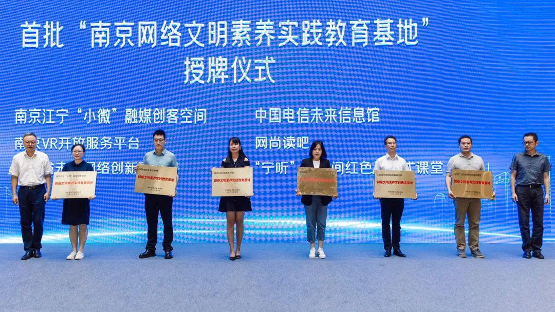 大会现场授牌首批“南京网络文明素养实践教育基地”。近年来,南京江宁“小微”融媒创客空间、中国电信未来信息馆、南京VR开放服务平台、网尚读吧、江苏省未来网络创新研究院、“宁听”云空间红色沉浸式课堂等线下基地,围绕网络文化、网络安全、网络普法、信息化发展等主题,开展形式多样、深入浅出、寓教于乐的线上线下教育活动,吸引不少市民尤其是青少年拍照、打卡,在潜移默化中接受网络素养教育,取得良好的社会反响。