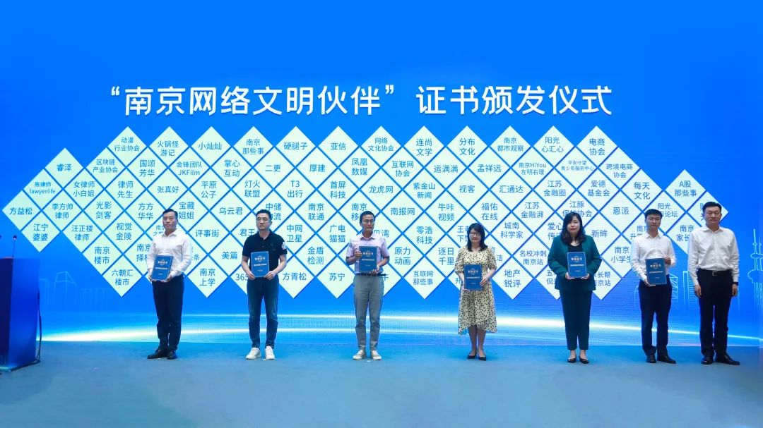 “南京网络文明伙伴”代表的区块链证书,为大会刷足了科技感。来自网络社会组织、网络人士、网络媒体等领域的代表,将持续发挥榜样示范的力量,“一棵树唤起一片森林”,带动更多主体参与网络文明建设。会上还公布了全市100位网络文明伙伴名单,在《南京市网络文明倡议》的宣读声中,“做网络正能量的传播者、网络文明的弘扬者、网络素养的践行者、清朗空间的建设者”的共识深入人心。