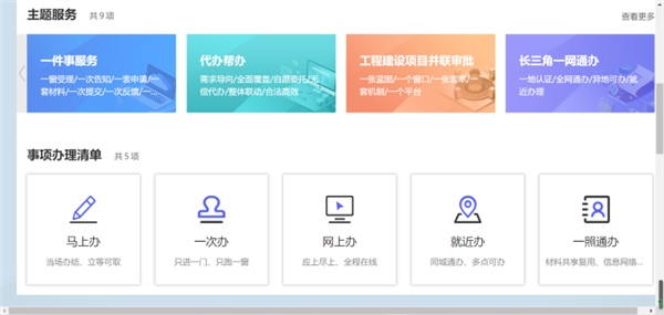 新版的旗舰店包含了个人和法人两个特色空间,归集用户个人信息、证照信息、办件资料,面向企业用户还提供多级用户授权使用体系,为企业提供多人协作分工办理服务事项的功能。随后的主题服务专区,则集成了“一件事服务”、代办帮办、工程建设项目并联审批、长三角一网通办、中介超市、小微企业和个体工商户、公共资源交易、办事大厅电子引导、停车引导九大类“点餐式”服务,为企业和群众提供更贴心的服务、更好的客户体验。