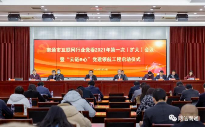 2月24日,南通市委网信办举行市互联网行业党委2021年第一次(扩大)会议暨“云链e心”党建领航工程启动仪式。本次会议是南通市委网信办在春节后召开的第一场大型会议,旨在深入学习贯彻习近平总书记关于网络强国的重要思想,贯彻落实全国、全省互联网行业党建工作要求,在市委组织部、市委“两新”工委的大力指导下,精心组织开展党史学习教育,规范化开展行业党的建设,系统化推进行业发展。