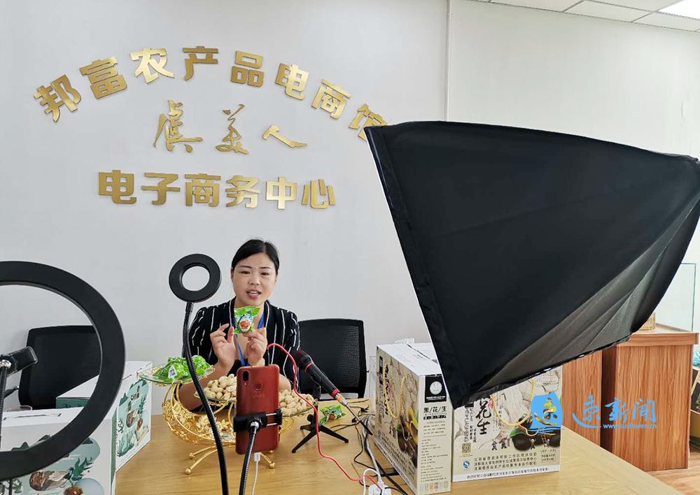 “小伙伴们,这款沭阳产咸鸭蛋被腌制出油,象征大家富得流油……”8月5日上午,位于宿迁市沭阳县的宿迁北亦斗网络传媒科技有限公司“娱播”直播间,主播安晶正对着手机直播带货,向一万多名粉丝推介沭阳咸鸭蛋、高墟碱米、张圩花生等农产品,短短两个小时,销售额超一万元。