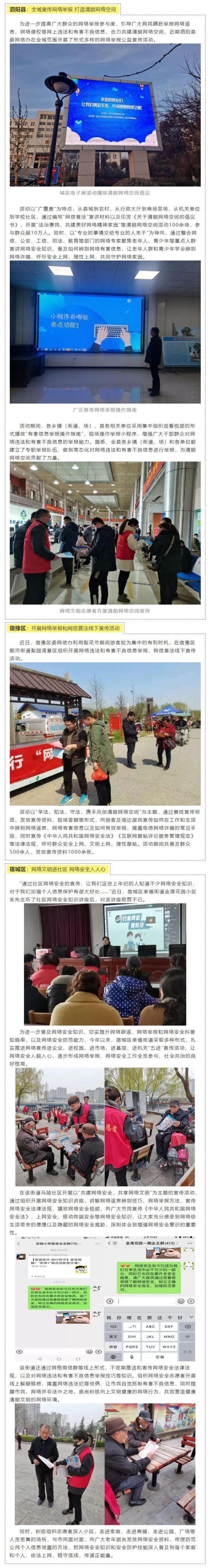 近日,宿迁各地持续深入开展“e起护网”网络文明宣传行动,大力推动网络举报宣传进基层,通过开展形式多样的活动,提升了网络举报工作知晓率、到达率、满意率,增强了广大市民的网络举报意识和防诈骗技能、自我防护能力,为打造清朗网络环境奠定了坚实的群众基础。