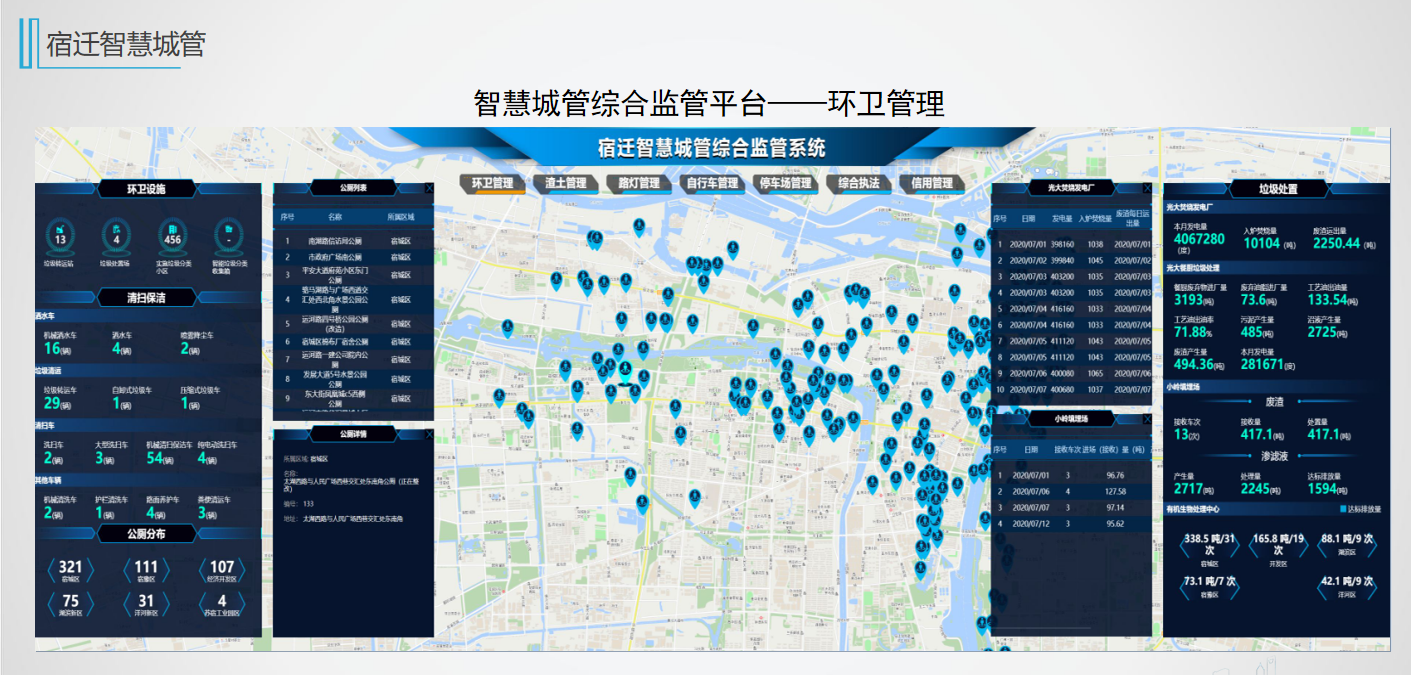 “截至目前,宿迁市智慧城管平台已经汇聚环卫、渣土、路灯等8个城市管理业务系统大数据,归集了全市28个行业应用数据,初步实现了城市管理综合监管、分析研判、指挥调度、智慧分拨4大功能,做到了信息共享、实时感知、智慧管理。”宿迁市城管局党组书记、局长王永说。