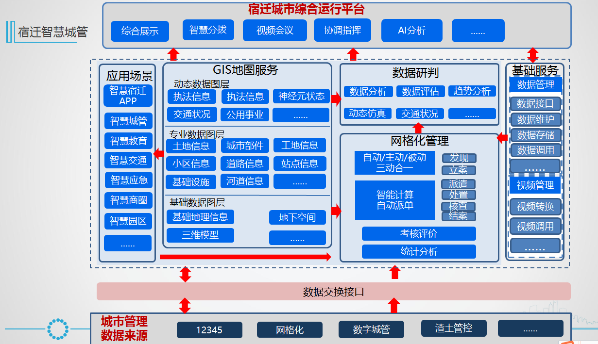 “运用大数据、云计算、区块链、人工智能等前沿技术推动城市管理手段、管理模式、管理理念创新,从数字化到智能化再到智慧化,让城市更聪明一些、更智慧一些。”去年以来,宿迁聚焦推进城市治理体系和治理能力现代化,以智慧城市建设为统揽,整合升级数字城管平台等,建成城市综合管理服务平台和智慧城管综合监管平台,涵盖城市管理综合监管、分析研判、指挥调度、智慧分拨等4大功能,同步创新视频AI识别等3个场景应用,已初步实现“一屏观全城、一网管全城、一端惠全城”,探索出全国中小城市智慧城市建设“宿迁样板”。