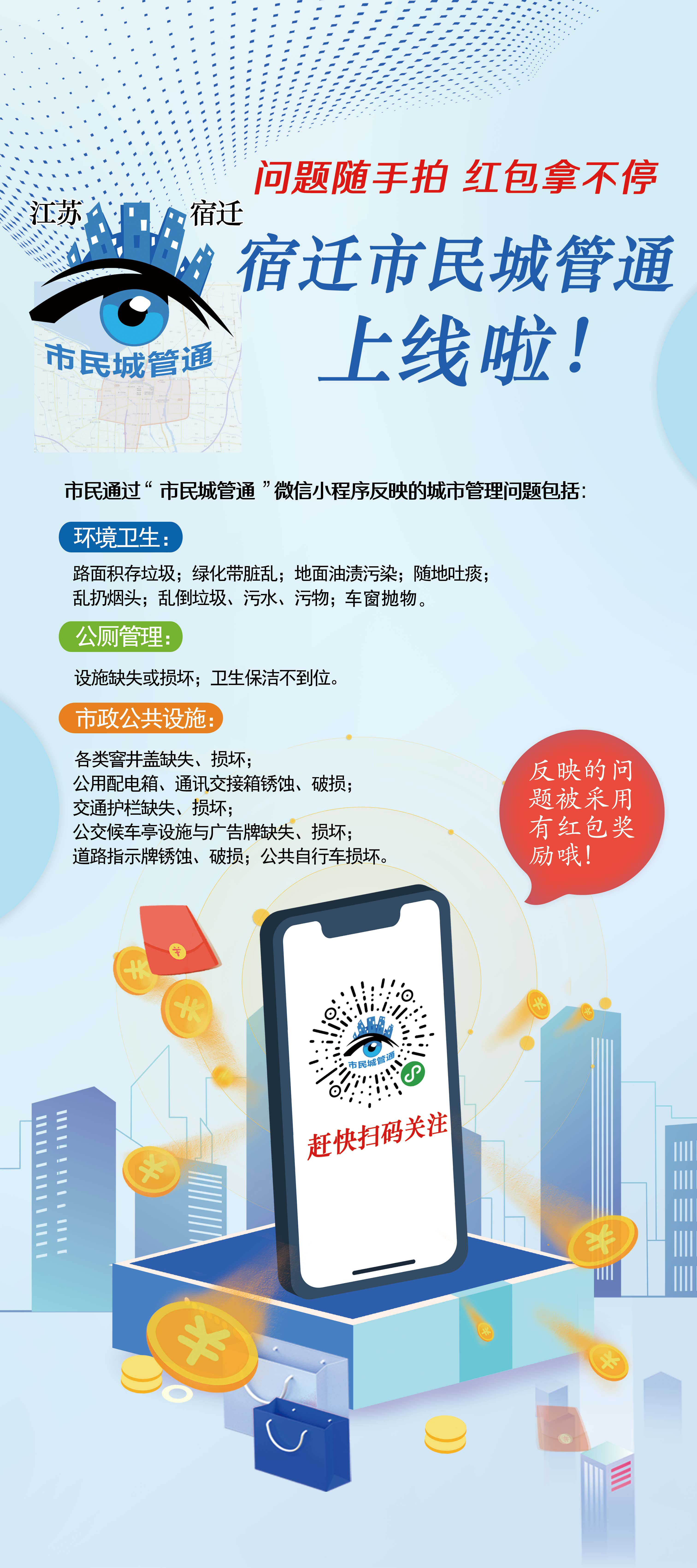 “通过微信小程序,就可以反映问题,既能促进问题解决,还能收获红包。”说起宿迁智慧城市建设,市民刘先生欣喜不已,“我们得到了实惠,参与城市管理的热情也就更高了,努力做到共建共管共享。”