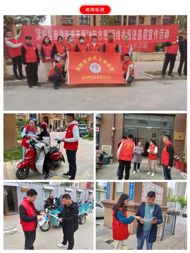 胡集镇组织新时代文明实践所志愿者进村庄、进机关、进集市、进公园等开展“e起志愿”网络举报进基层宣传活动。该镇共发放网络举报宣传单3000余份,张贴二维码150余份,现场解答群众疑惑200余次。