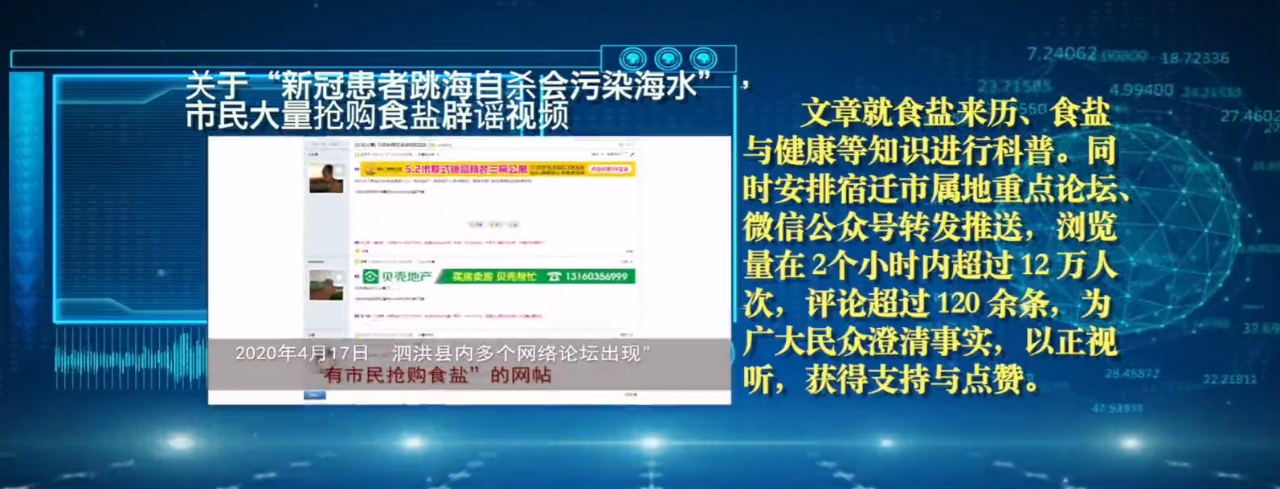 宿迁网络辟谣案例:《关于“新冠患者跳海自杀会污染海水”,市民大量抢购食盐辟谣视频》