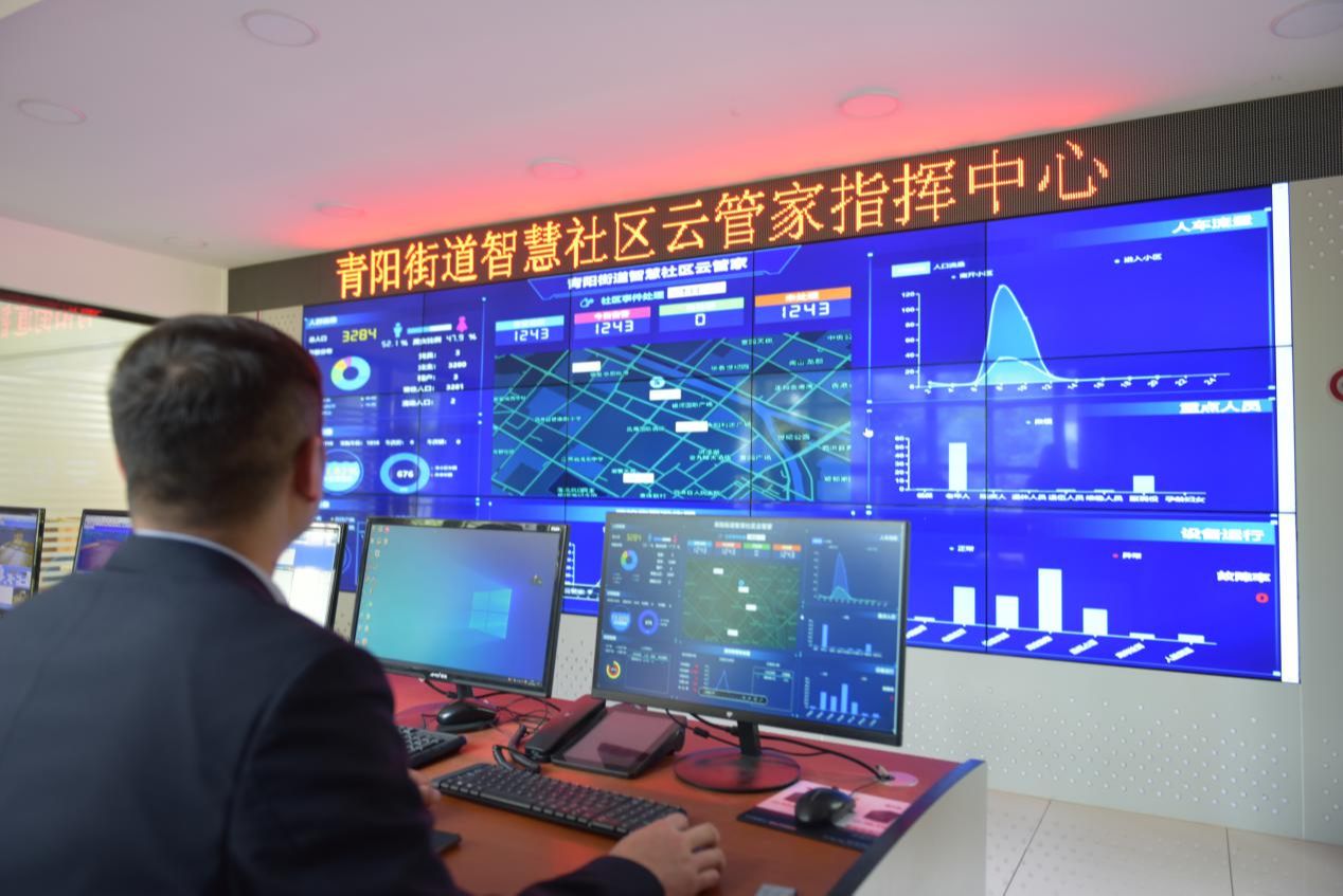青阳街道通过综合指挥调度中心,就可指挥疫情防控、处置应急事件、处理社区事务、解决民生诉求;社区智慧运行管理中心,可及时收集、分析、处理高空抛物、消防通道占用等告警信息,实现智能物联实时治理,第一时间让工作人员通过视频监控告警手段,将违规占道、高空抛物、垃圾满溢等一键形成事件,实现传统人防向智慧技防衍变;做到人过留影、车过留牌、智能测温、轨迹监测、提前捕捉群众诉求信息等,达到高效处置、长效管控、源头治理效果。