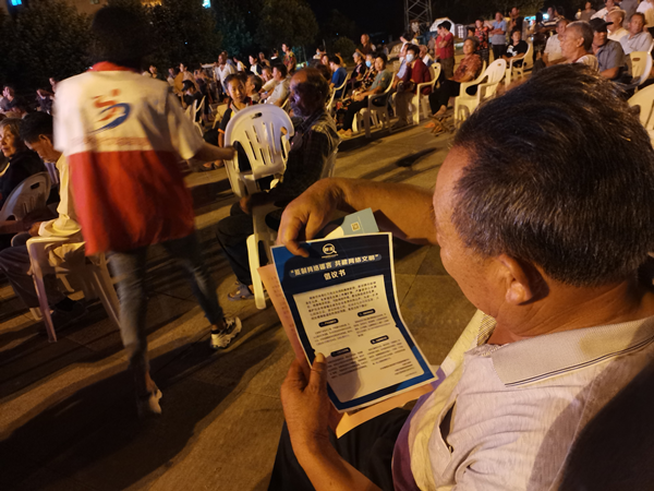 观看公益短片,强化宣传活动效果。通过播放公益短片《谣拦曲》、MV《让谣言消散》以及公益情景剧、《宿迁市互联网违法和有害不良信息举报小程序操作指南》宣传视频等,让现场的群众更直观地了解谣言以及甄别方法,了解网上有害信息的举报方法和警方处置流程,增强自我保护意识,提高明辨是非的能力。
