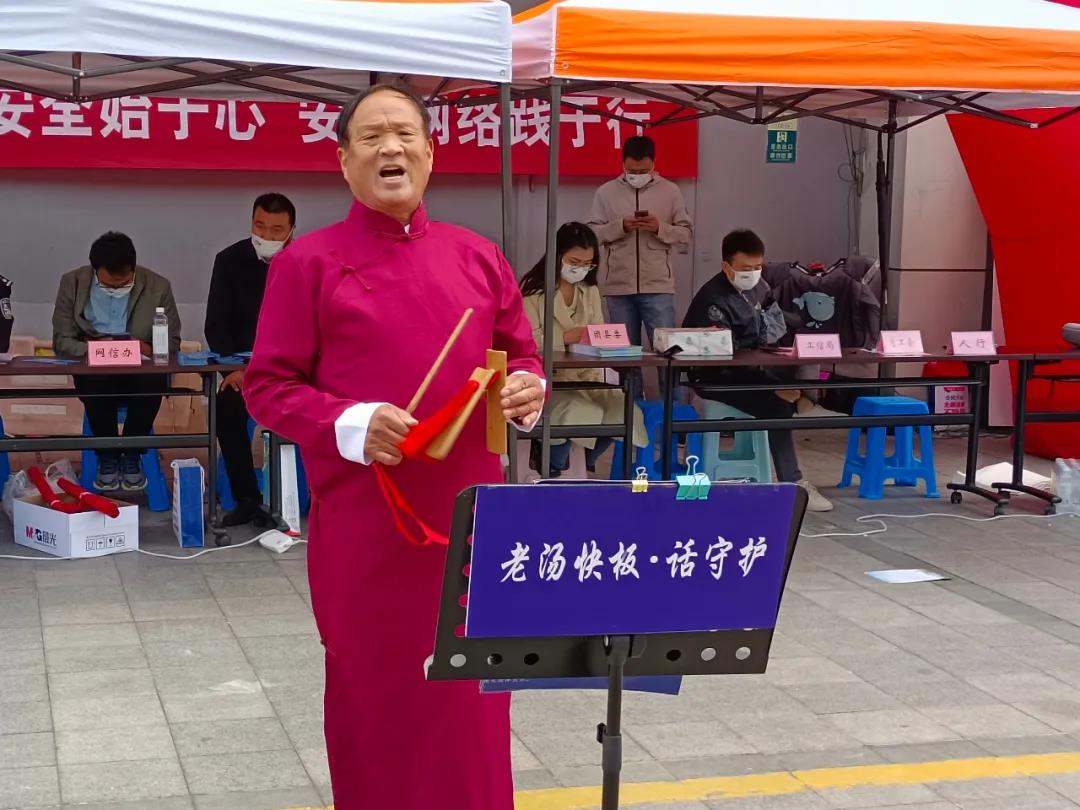 活动现场,群众代表“快板大爷”汤成万还以快板形式,自编自演一段网络安全反诈知识宣传快板,简单易懂、朗朗上口,受到现场围观群众的热烈欢呼,每当说到高潮处,都会引来一声声叫好和一阵阵热烈的掌声。