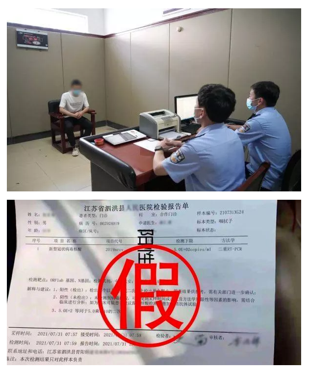 “喂,110吗?有人在微信群内发布核酸检测‘阳性’照片,请问是不是真的?”2021年8月1日,泗洪警方接到市民报警,随即传唤当事人王某进行调查。