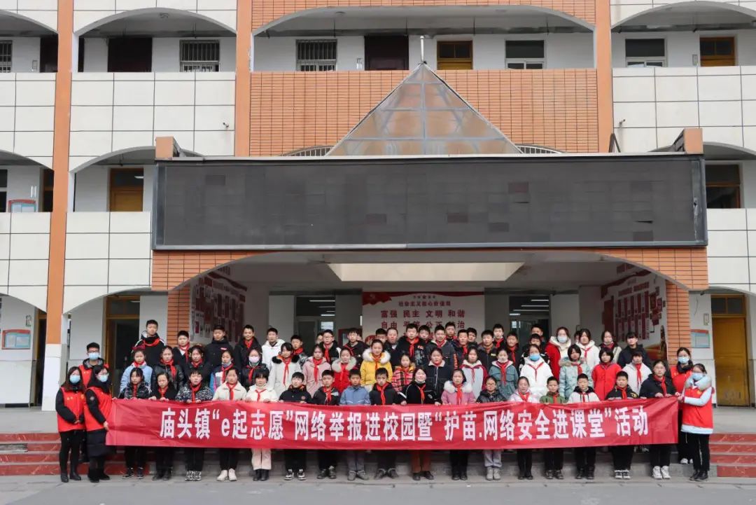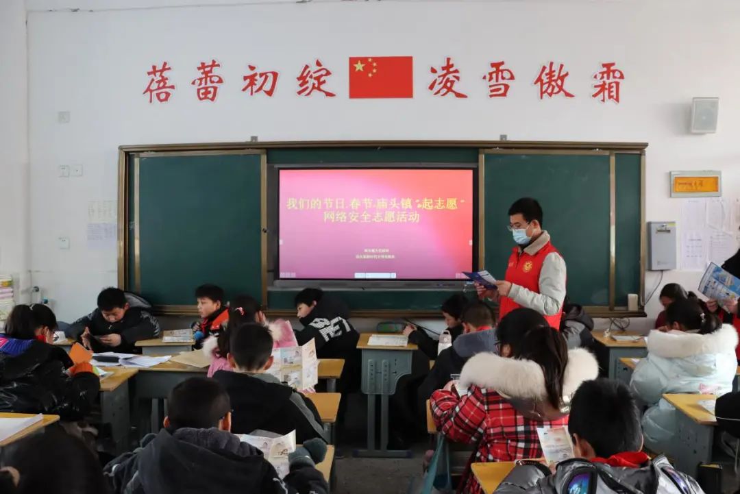 1月18日上午,庙头镇组织志愿者走进庙头中心小学,开展“e起志愿”网络举报进校园志愿服务活动。