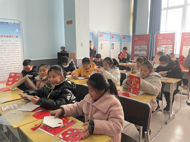 活动现场,志愿者们还组织了在场的小学生做起了手工——灯笼,来辞牛年迎虎年。一个个红彤彤的小灯笼在小朋友的手中活灵活现,就像元宵节来临一样。