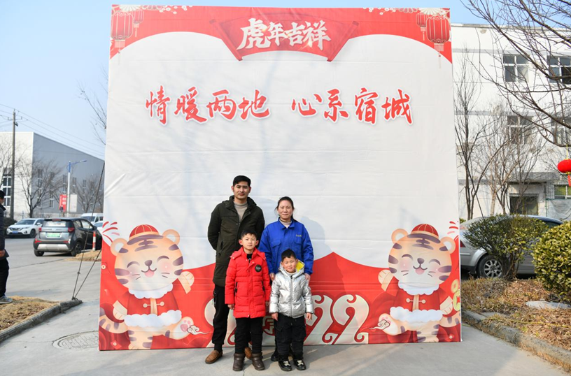 “来,来,来,咱们再站近一些。”员工李东阔、徐岩是一对夫妻,他们带着两个孩子站在拍照墙前,脸上洋溢着甜蜜的笑容,“咱们家好久没有拍过全家福了,感谢政府,感谢公司,这样的活动太走心了!”