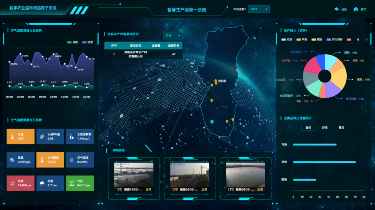 “农业大数据管理一张图、农产品质量安全管理一张图、指挥生产服务一张图、水产品交易一张图等等,一图尽览,一屏尽览。”宿迁市泗阳县农业农村局智慧渔业综合管理平台工作人员胡子夜介绍,通过大数据赋能农业,带来便利的同时解决了许多问题,生产力得到了大力提升,水产养殖数字化以后,养鱼人的工作变得更轻松,原先一名工人只能养十亩地,现在可以养100亩甚至更多。