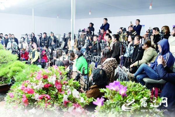 4月23日下午,在沭阳县新河镇周圈村道艺然园林有限公司盆景直播中心,数十名“直播”电商以直播拍卖的形式销售盆景。