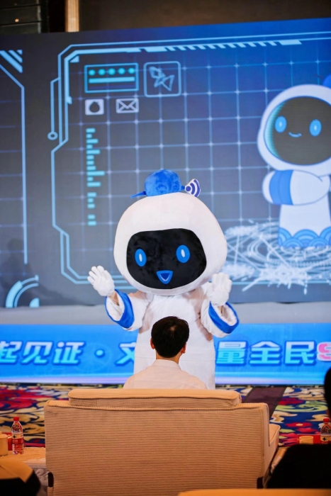 网络文明是伴随互联网发展而产生的新的文明形态,是现代社会文明进步的重要标志。为了进一步在线上线下凝聚共识、共谋发展,大力倡导网络文明,共同推进文明办网、文明用网、文明上网,代表着科技与文明交融、现代与古代碰撞的网络文明IP——“明明”诞生了。“3,2,1……”随着倒计时响起,宿迁网络文明IP“明明”首次亮相,与现场人员击掌互动,迅速将现场气氛推向另一波高潮。