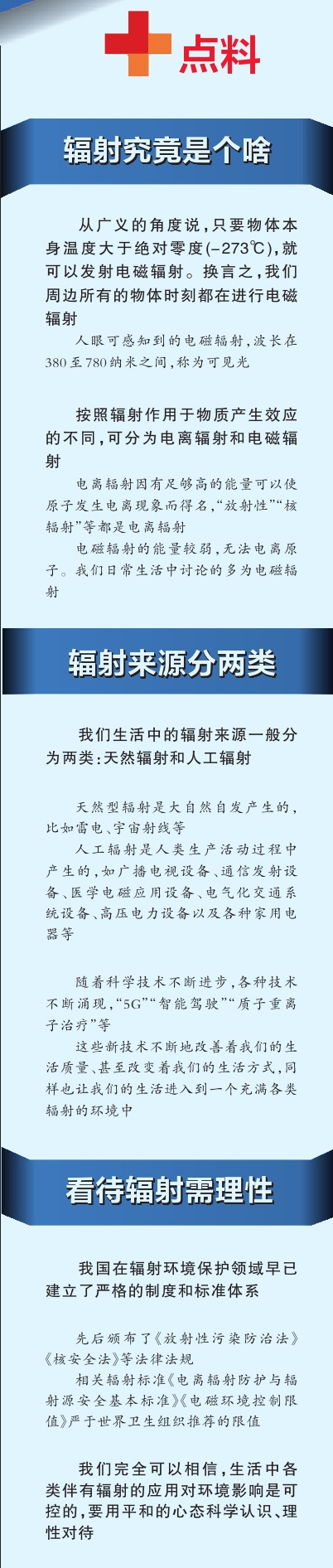 “我以前问过产科医生一个问题:怀孕了是不是不能用手机和电脑。这位医生告诉我,辐射无处不在,因为担心辐射问题而不用手机和电脑,是没有必要的。”在一次随机采访中,家住吴中区的陈霖霖告诉记者,前几年怀孕时,她特别研究过辐射知识,发现辐射并不可怕,太阳、土壤、建筑物、空气、水、桌子,甚至周围的人,到处有着辐射,但这些辐射都是安全的。