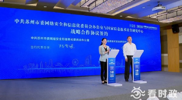 启动仪式上,苏州市委网信办和国家信息技术安全研究中心签订战略合作协议,根据协议,双方将共同推动国家信息技术安全研究中心苏州分中心建设,更好服务苏州网信事业。