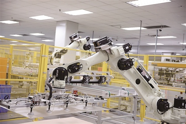只要将订单相关数据输入生产集成系统,几秒钟后,一个涵盖使用原料、工艺等元素的生产计划便可出炉。进入生产环节后,订单便流转到无人的“熄灯工厂”。“熄灯工厂”内,只见机械臂不停地重复抓取、翻转、移动等动作,自动导引运输车接收着系统自动向其下达的指令,来回运送着货物,无需任何人工操作。