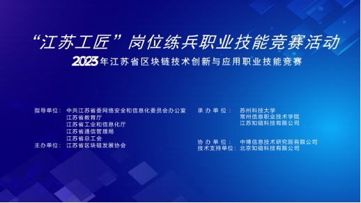 11月25日,由省委网信办、省工业和信息化厅、省教育厅、省通信管理局、省总工会共同指导,省区块链发展协会主办,苏州科技大学、常州信息职业技术学院、江苏知链科技有限公司承办的“江苏工匠”岗位练兵职业技能竞赛活动——2023年江苏省区块链技术创新与应用职业技能竞赛在苏州圆满落幕。