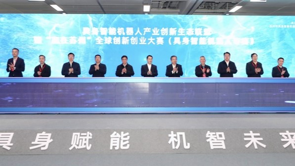 昨天(4月3日),苏州市具身智能机器人产业生态大会在狮山国际会议中心举行,具身智能机器人产业创新生态联盟暨“赢在苏州”全球创新创业大赛(具身智能机器人专赛)正式启动。工业和信息化部总工程师谢少锋,中国电子学会理事会党委书记张峰,市委副书记、市长吴庆文出席。