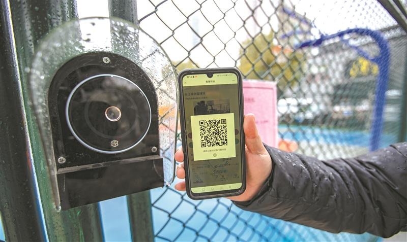 三个智慧开锁运动场分别为长江北路与前卫路交叉口的“处暑·彩虹园”全场篮球场、长江北路与叙康路交叉口“春分·芬春园”半场篮球场和羽毛球场。记者在“处暑·彩虹园”篮球场看到,场地虽小,但很受市民欢迎,不时有人扫码进入运动(上图)。据悉,运动场还设置了可免费使用的无线手机充电桩,解决了群众运动时手机充电的难题。