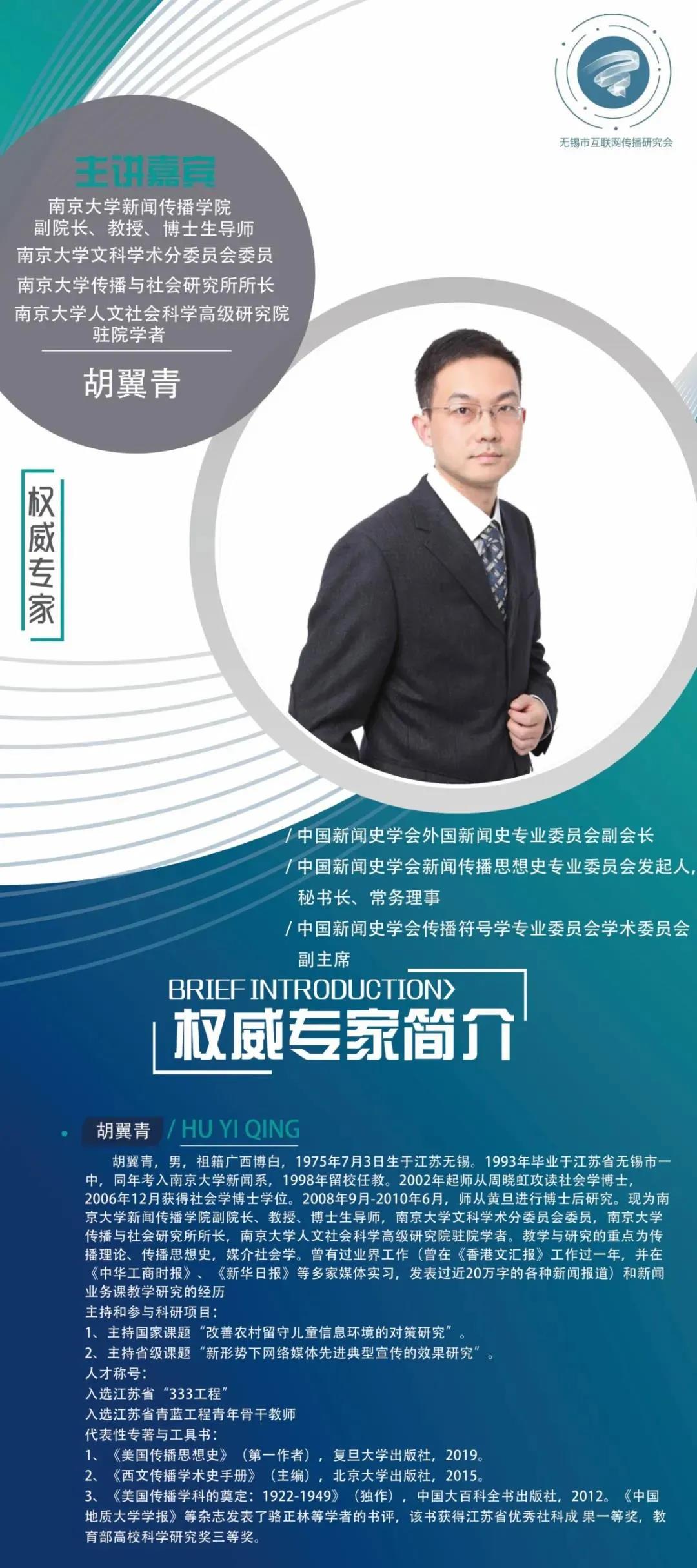 南京大学新闻传播学院副院长、教授、博士生导师胡翼青以《创新传播机制提升无锡城市网络形象》为题进行主旨演讲。