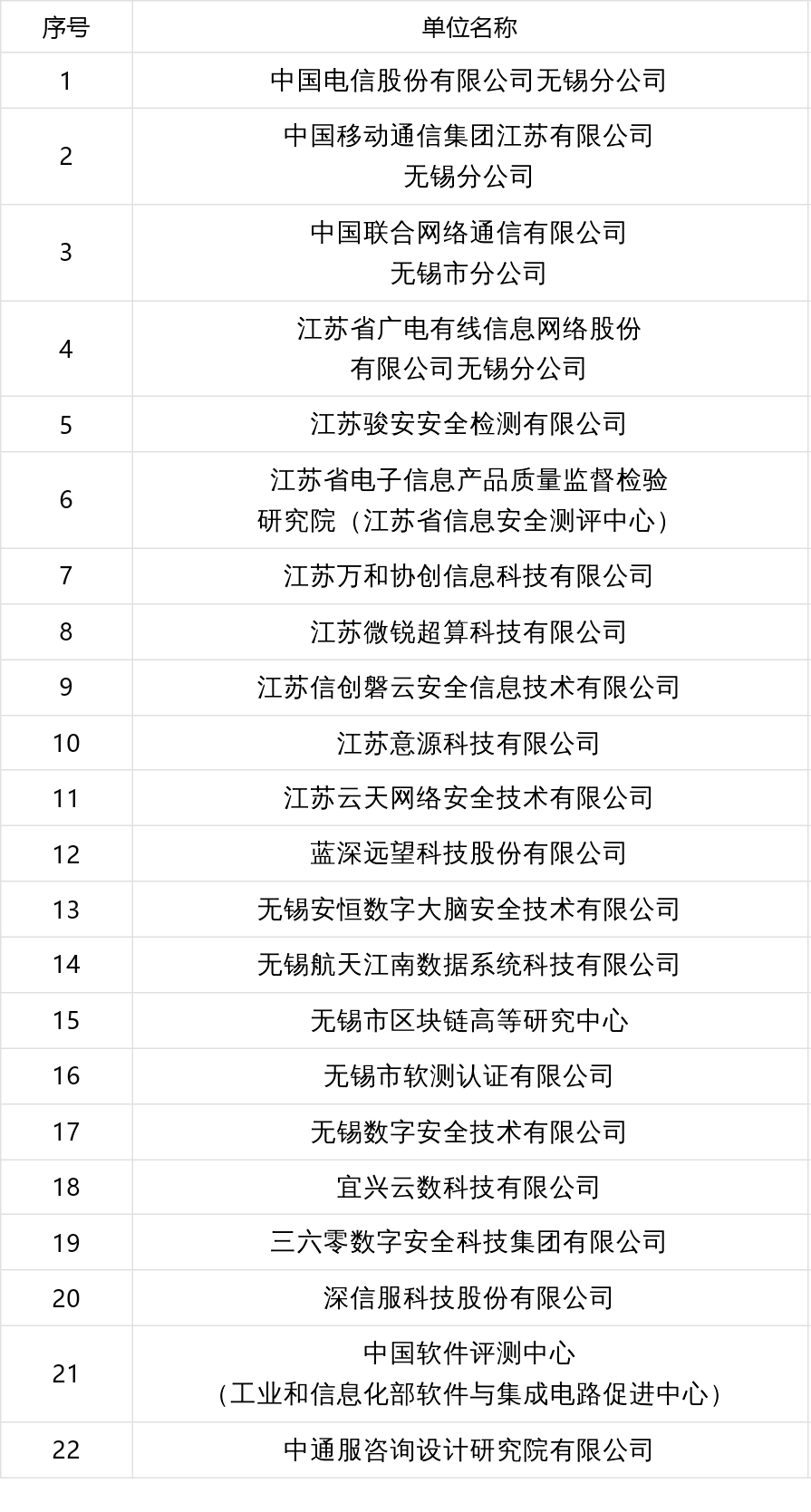 根据中共无锡市委网信办、无锡市工业和信息化局、无锡市公安局、无锡市数据局发布的《关于开展2025年度无锡市网络和数据安全技术支撑单位遴选的通知》要求,经单位自主申报、形式审核和专家评审等程序,拟选取以下30家单位作为“2025年度无锡市网络安全技术支撑单位”,22家单位为“2025年度无锡市数据安全技术支撑单位”,有效期1年。