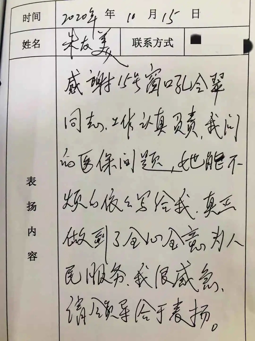 工作人员告诉记者,几年前,有位老大娘双手接过工作人员递交的便签后,将它放到自己随身携带的手帕中间,依次收起手帕的四个角,再小心翼翼地放入自己的口袋中,接着在口袋外面拍了拍,确定便签放好后,才离开大厅。老大娘的举动,也激励着工作人员将这项举措延续下去,为参保人员提供更优质贴心的服务。