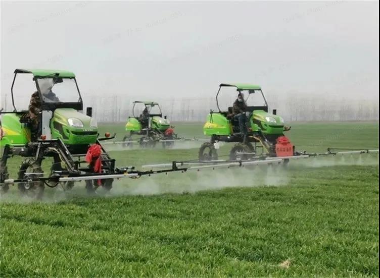▲使用传统的轮式植保机作业会造成不少小麦损耗