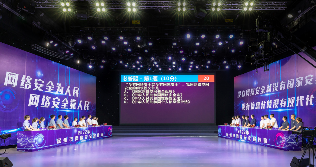 9月6日下午,2022年徐州市网络安全宣传周启动仪式暨网络安全知识技能大赛团体赛决赛在徐州广电演播大厅举行。市委书记宋乐伟为网络安全宣传周活动专门作出批示,市委常委、宣传部部长李淑侠出席活动并讲话。