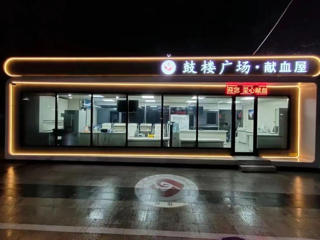 鼓楼广场献血屋外观采用全透明玻璃设计,风格简约,外观新颖。室内装饰色调柔和,空间宽敞,功能划分明晰,分设填表区、征询体检区、初筛区、献血后休息区,各类设施一应俱全,为献血者提供温馨、便捷、安全、舒适的服务环境。
