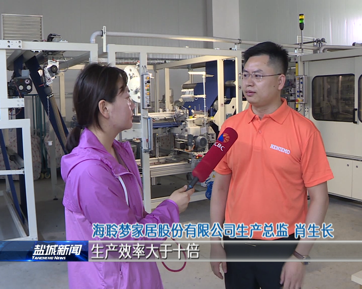 海聆梦家居股份有限公司生产总监 肖生长:“它需要100号人,如果传统生产线的话,但是我们用自动化枕套机只需要5到6个人,生产效率大于十倍。”