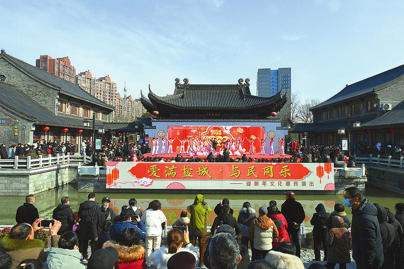 春节期间,各类新潮独特的小型演出陆续走进景区、文博场馆、饭店、茶馆……遍布全城的演艺新空间,卧虎藏龙的文艺工作者和民间艺人,正在将盐城打造成一个开放式的欢乐大舞台!