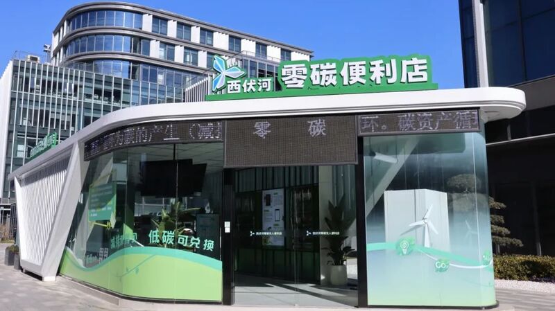在西伏河绿色低碳科创园,“绿色行为即财富”的标语正演变为现实。光盘行动获3个碳积分、驾驶电动汽车入园得5个碳积分、参与环保答题再赢5个碳积分——这些碳积分可在园区内的零碳便利店直接兑换成代金券,开创了“碳价值即时变现”的消费新模式。这是全国首家“碳+AI”零碳便利店。通过技术创新将环保行为转化为经济激励,构建出“低碳-积分-消费”的闭环生态。