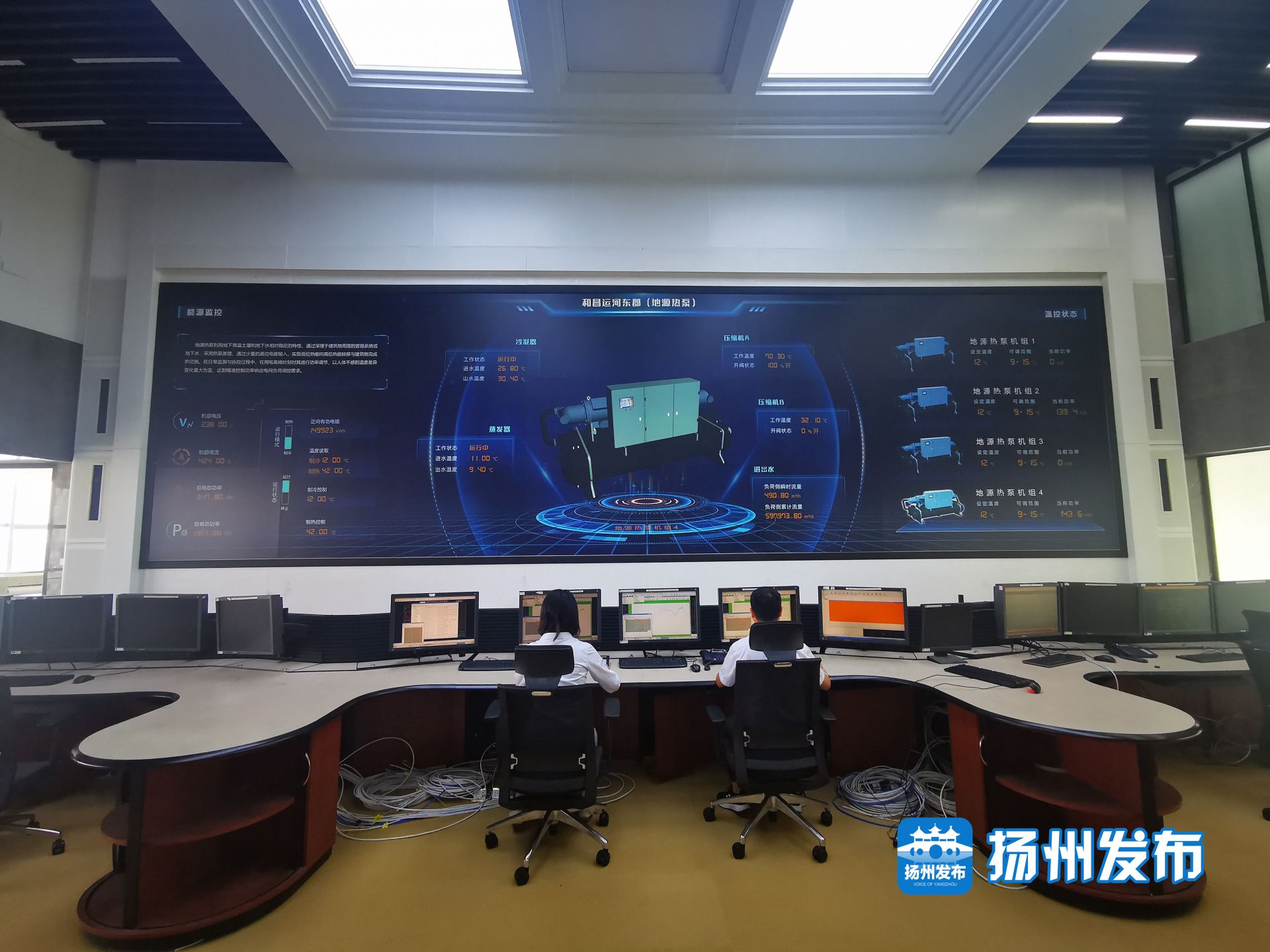 8月20日上午9点,在国网扬州供电公司电力调度控制室内,该中心调度专职吴佳佳在综合能源协调控制系统平台对于扬州和昌运河东郡小区地源热泵的控制模块发出远程升温 2°指令,系统平台实时监测界面上,该小区地源热泵出水口温度曲线缓慢上升,20分钟后,温度从12°上升到14°,这标志着全国首个城区区域综合能源协调控制系统在扬州正式投入使用 。