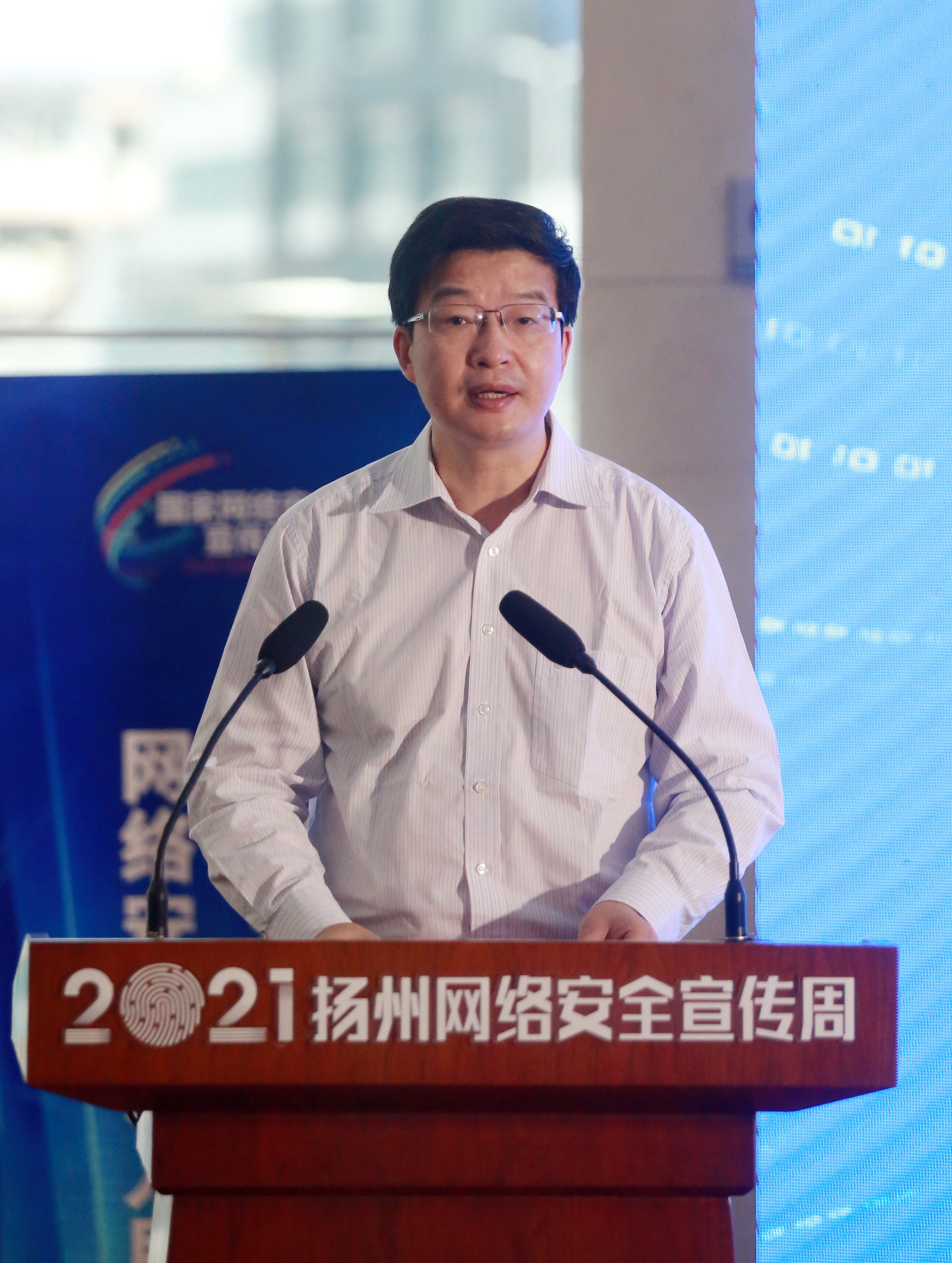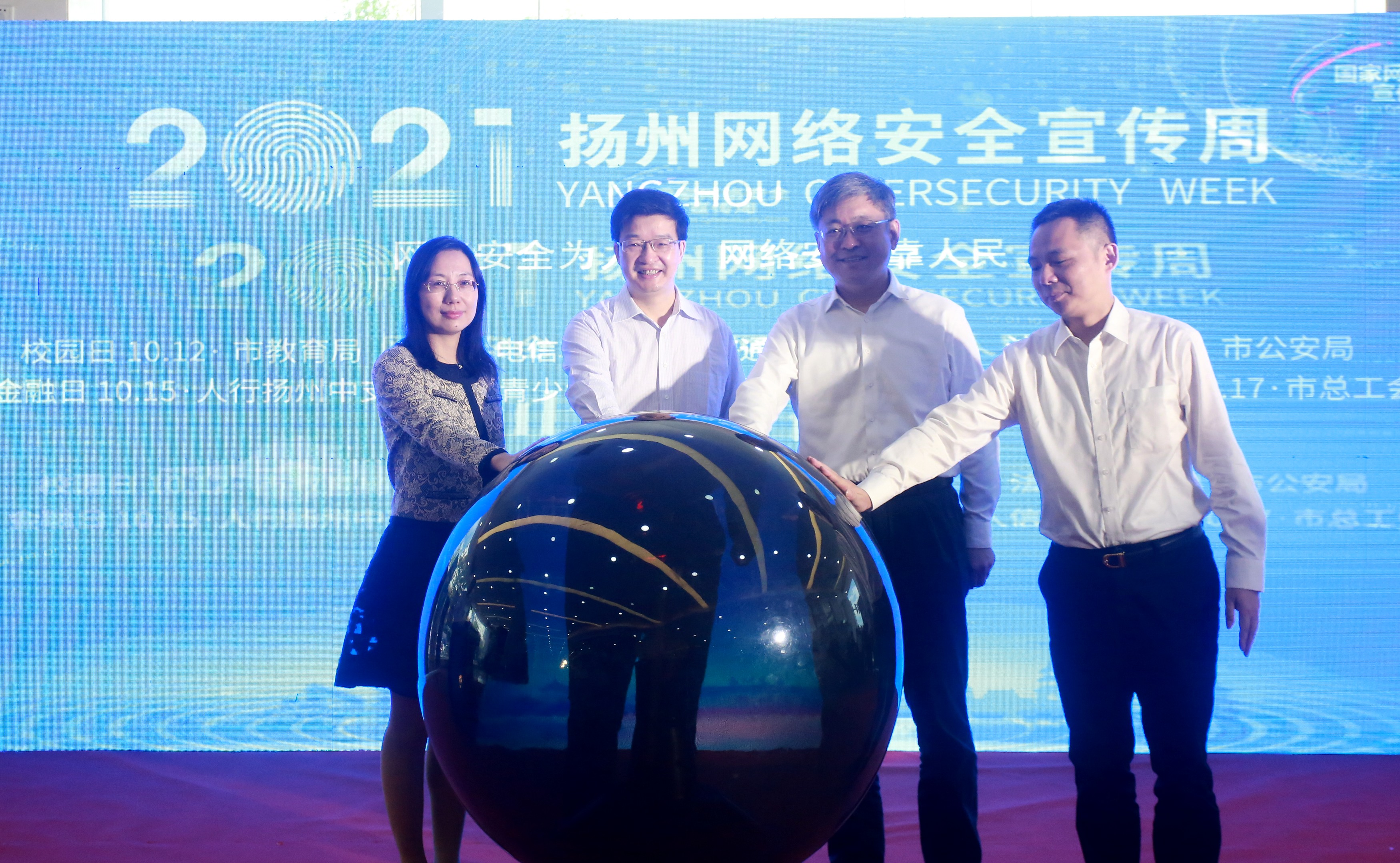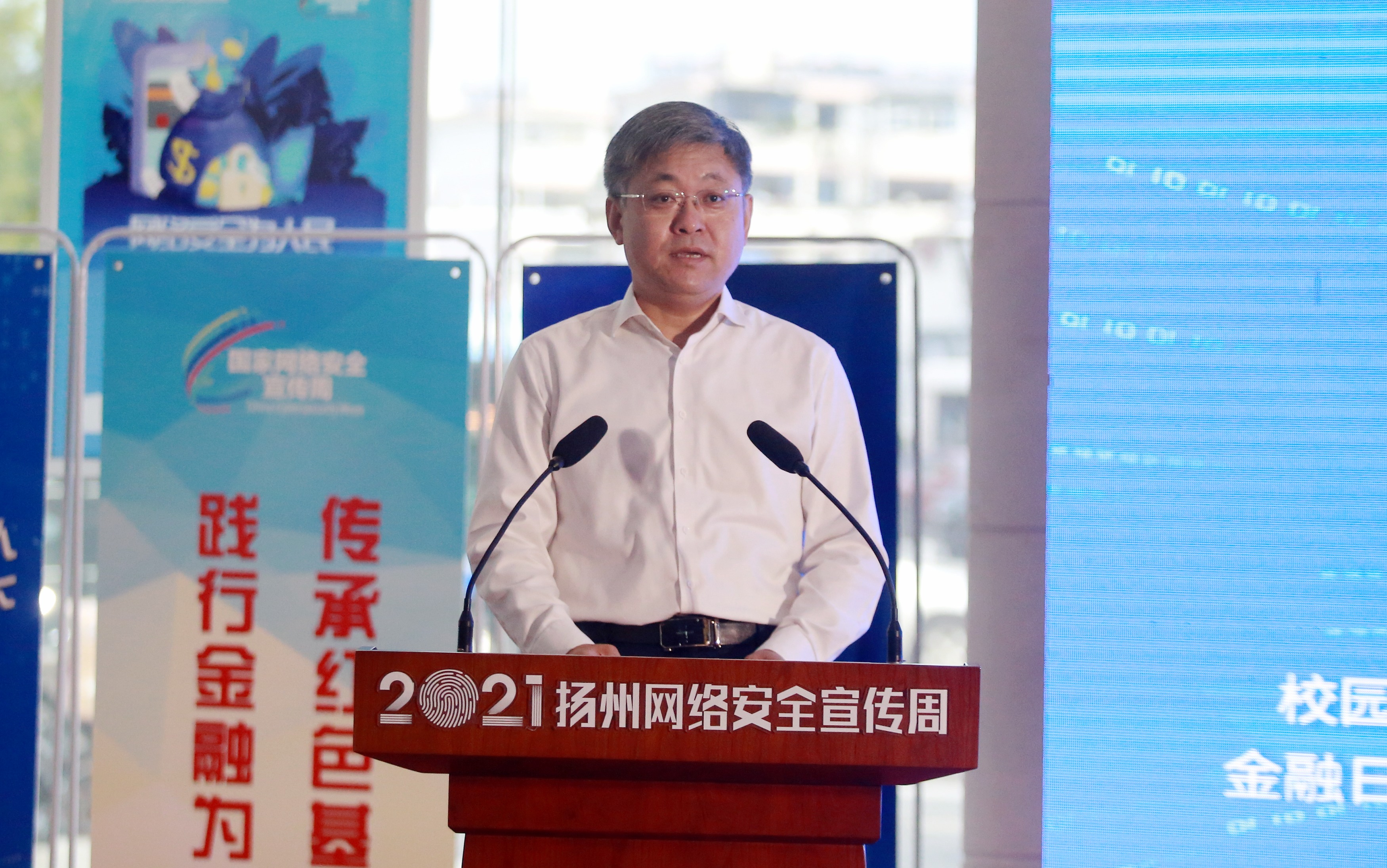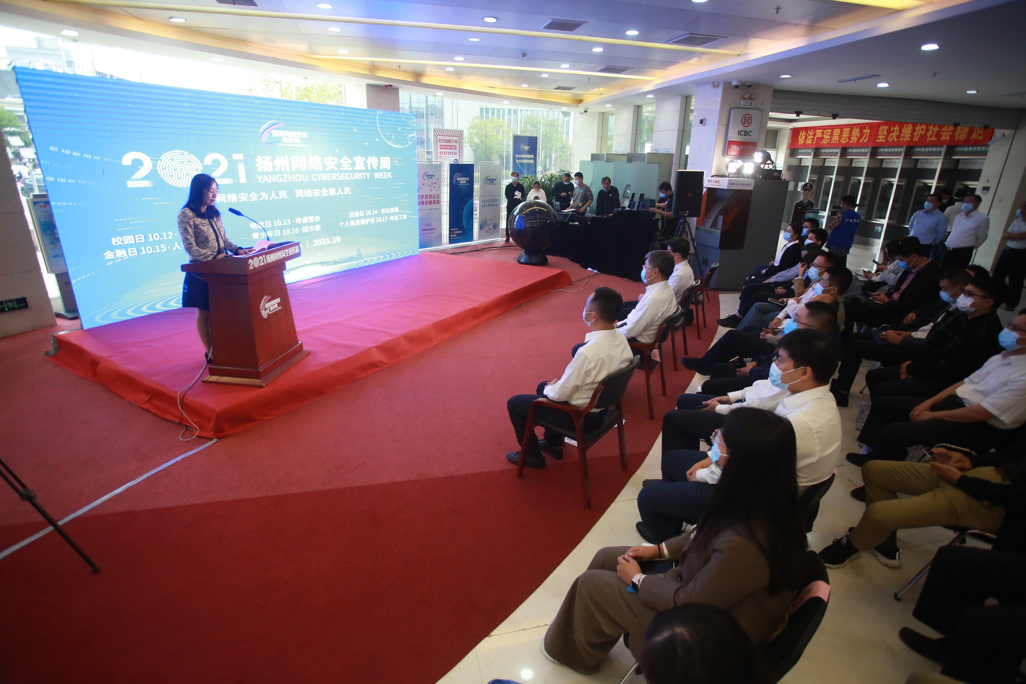10月12日上午,2021年扬州网络安全宣传周在扬州工商银行营业部正式启动。今年的宣传周活动从10月11日至17日,主题为“网络安全为人民,网络安全靠人民”。市委书记张宝娟对2021年扬州网络安全宣传周作出批示。副市长余珽出席开幕式并讲话,市委宣传部副部长、网信办主任殷元松介绍了宣传周整体活动安排。