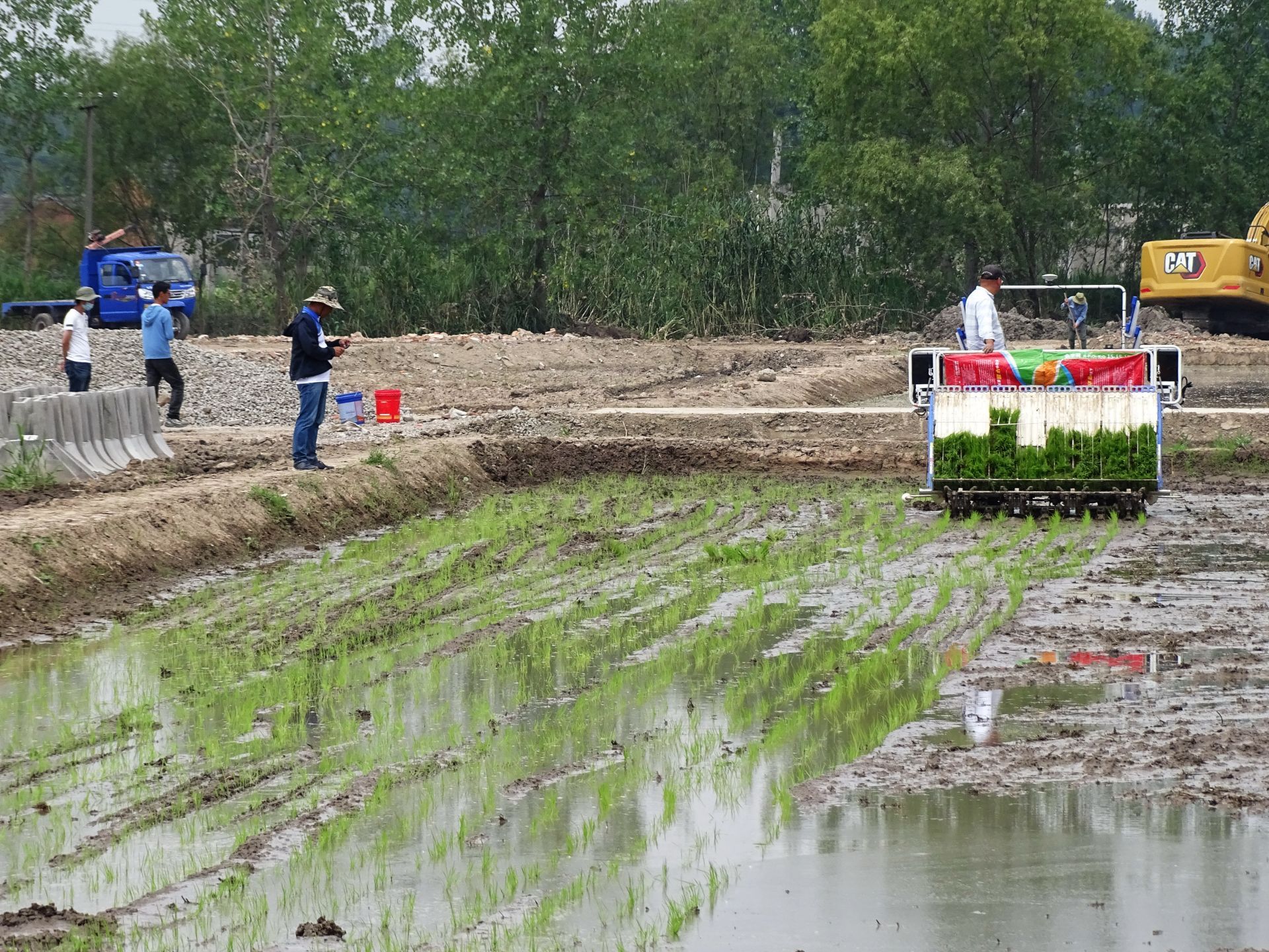 眼下正是水稻插秧时节。记者在沙头镇晨兴村张洪程院士创新实验基地看到,一台插秧机正在水田里插秧,机器上没有人驾驶,只有一个人在田边观看运行情况和秧苗情况。快到田埂处,插秧机精准转弯,又继续自动插秧……随着这台无人插秧机在水田里来回行驶,一株株绿色的秧苗插进泥土里,呈现出淡淡的新绿。