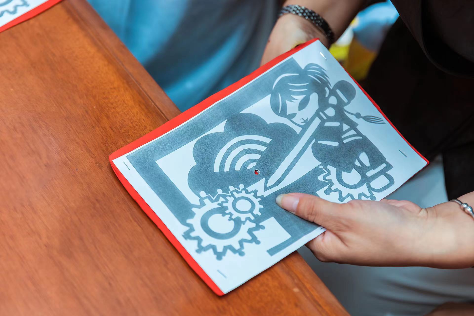 “剪纸是经典的传统文化,有很多人特别是小孩子平日里很少接触到,我们应该多创造机会让下一代好好感受,这样才能传承好我们的剪纸艺术。”现场,赵红妹一边耐心讲解了剪纸的技巧和蕴含的文化意义,一边手把手教孩子们制作与网络安全宣传息息相关的剪纸作品。