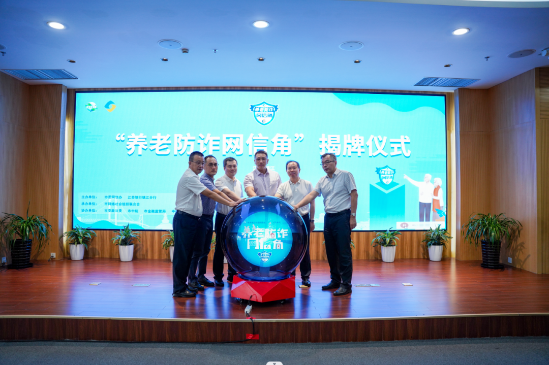 为进一步落实打击整治养老诈骗专项行动工作要求,8月24日上午,市委网信办联合江苏银行镇江分行打造“养老防诈网信角”,并举办镇江市“养老防诈网信角”揭牌仪式。省委网信办网络综合治理处副处长李健到场指导,市委网信办主任兼市委宣传部副部长翟胜勇,市委政法委常务副书记朱海,江苏银行镇江分行党委书记、行长周元明出席活动并致辞,市地方金融监督管理局、中国人民银行镇江市中心支行、中国工商银行镇江分行、中国农业银行镇江分行、中国银行镇江分行、中国建设银行镇江分行、中国交通银行镇江分行分管领导受邀参加。