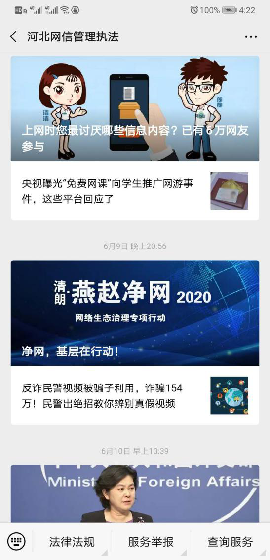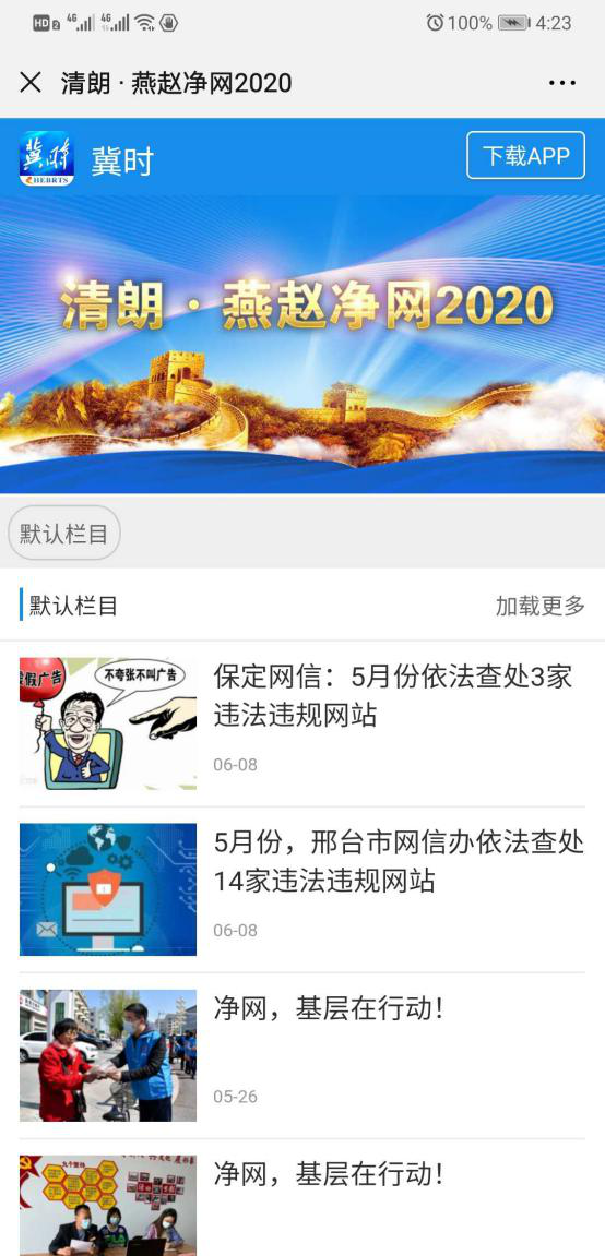 “河北网信管理执法”微信公众号“燕赵净网”专栏
