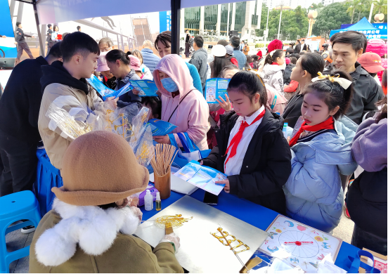 现场邀请非遗剪纸传承人和糖画技艺传承人到现场,群众通过举报知识小问答、举报辟谣拼图等方式,正确答题就可以体验糖画和剪纸技艺。