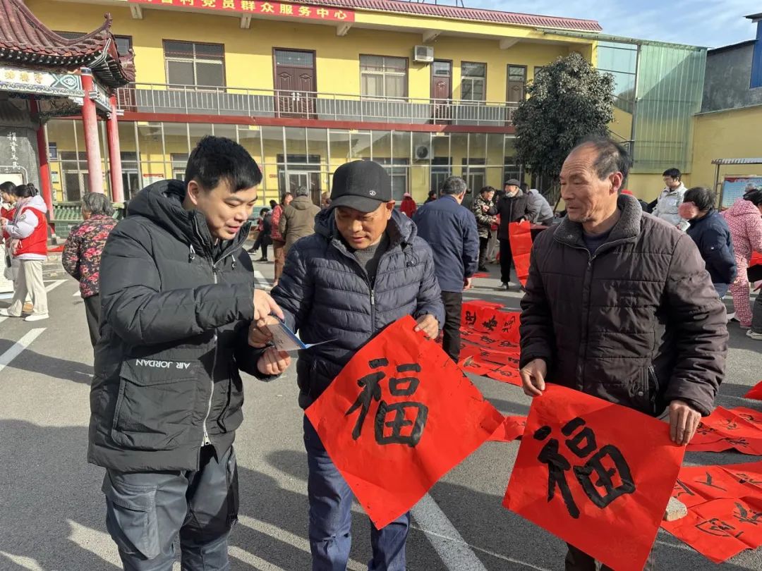 活动中,书法协会的老师们饱蘸浓墨、笔走龙蛇,一幅幅对仗工整、寓意美好的春联瞬间跃然纸上,以网络辟谣、网络安全、网络普法为主题的对联尤为引人注目,村民们一边欣赏一边挑选自己喜欢的春联,大家脸上洋溢着喜悦之情。一位大婶拿着刚挑好的春联笑呵呵地说:“能拿到书法老师为俺家写的春联,真是太开心了,这样的春联是外面买不到的,既喜庆又长知识,特别有意义!”