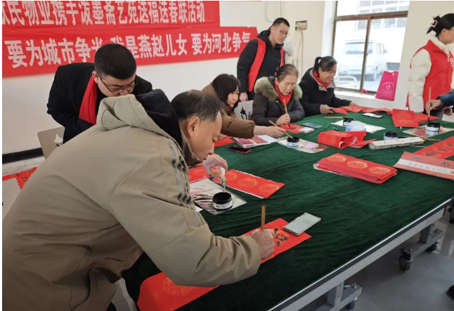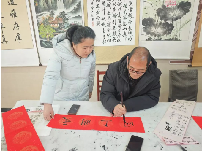 图为南和区委网信办邀请书法家为居民书写春联